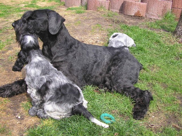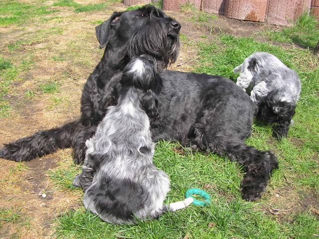 Unsere Yenne, die Welpen total putzig findet und sehr vorsichtig mit ihnen umgeht und über sie wacht.