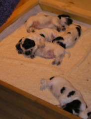 Schon sind 3 Wochen vorbei, die Welpen haben die Augen geöffnet und seitdem ist auch Bewegung ins Spiel gekommen. Alles ist interessant und vieles will erkundet werden.